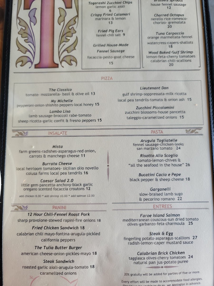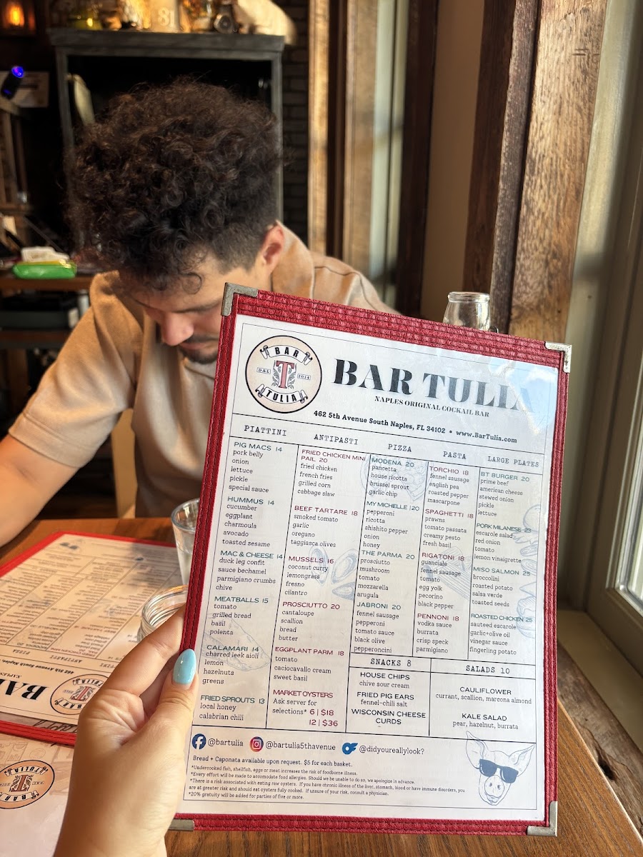 If you're in Naples and looking for a place to unwind, Bar Tulia 5Th Ave. Menu offers an amazing selection that’s perfect for any occasion. Nestled in the heart of 462 5th Ave S, Naples, FL, this spot blends delicious bites with an inviting atmosphere that makes it feel like the ultimate neighborhood hangout. Whether you're in the mood for a hearty dish or just a quick snack to pair with your favorite cocktail, there’s something on the menu that will hit the spot. Their offerings feature a variety of fresh, flavorful options that cater to all tastes-each dish crafted with care. From savory small plates to mouthwatering mains, you can’t go wrong. And of course, the drink selection is just as impressive, perfectly complementing the flavorful fare. The atmosphere is casual and laid-back, making it an ideal spot for both a quiet evening out or a lively gathering with friends. So, if you're looking to explore some great food in a relaxed, fun setting, Bar Tulia has you covered!